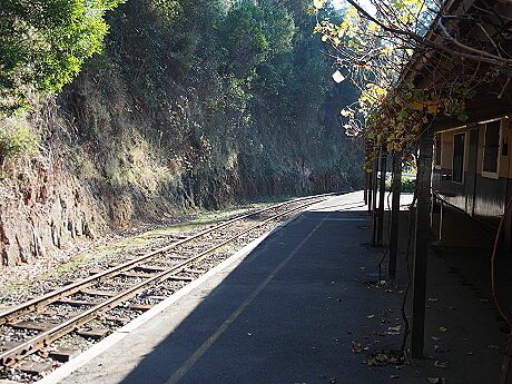 | The main platform station sign | Looking down the single platform |