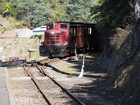 | The train is leaving the platform to enter loop to allow the engine to reverse | Carriages on the loop with the engine detached |